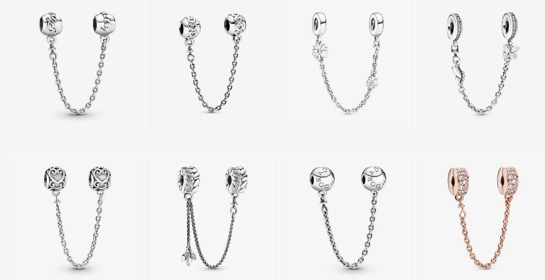 Safety Charm (sft): Charm được cấu tạo như 2 clip và được nối bởi 2 sợi dây xích nhỏ, ngoài chức năng trang trí cho chiếc vòng nó còn có tác dụng giữ lại chiếc vòng của bạn vẫn trên cổ tay bạn khi khóa vòng bị hỏng.