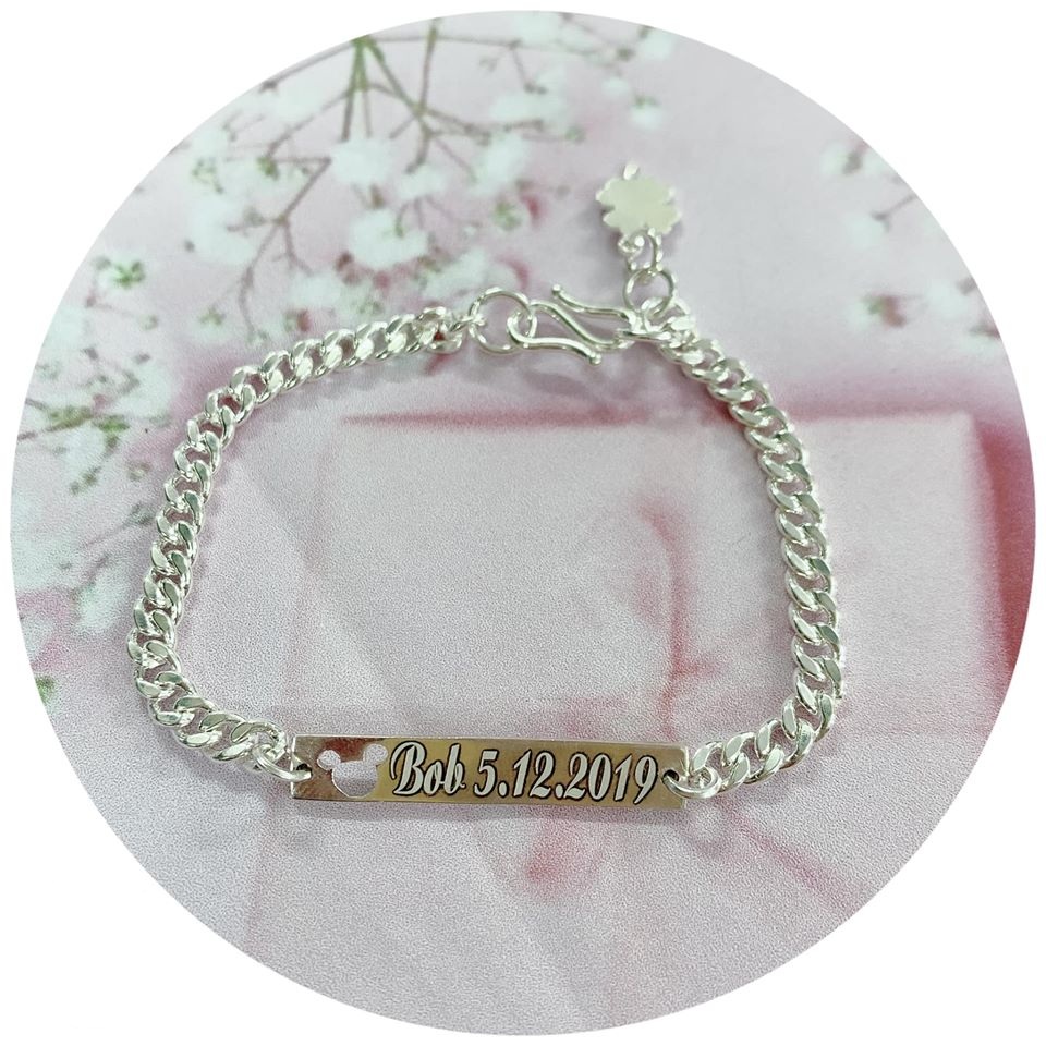Mẫu lắc đơn giản khắc tên được nhiều bố mẹ lựa chọn cho trẻ