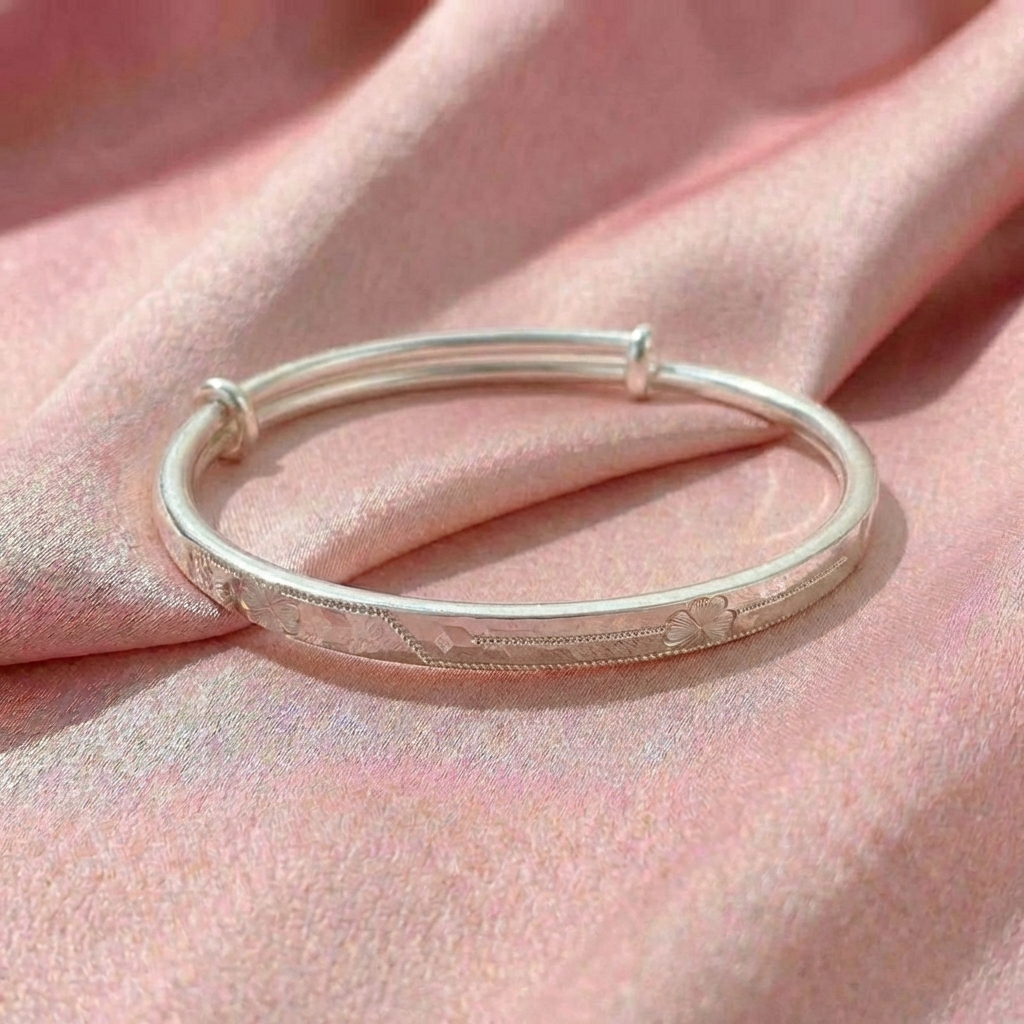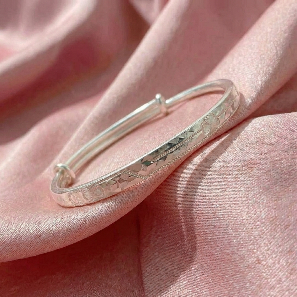 Vòng Tay Bạc Kiềng Hoa Sen - Vòng Đặc Bạc Nguyên Chất - VTBKHS0046