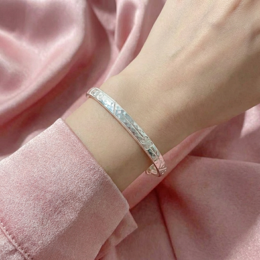 Vòng Tay Bạc Cỏ 3 Lá - Vòng Đặc Bạc Nguyên Chất - VTBC3L0032