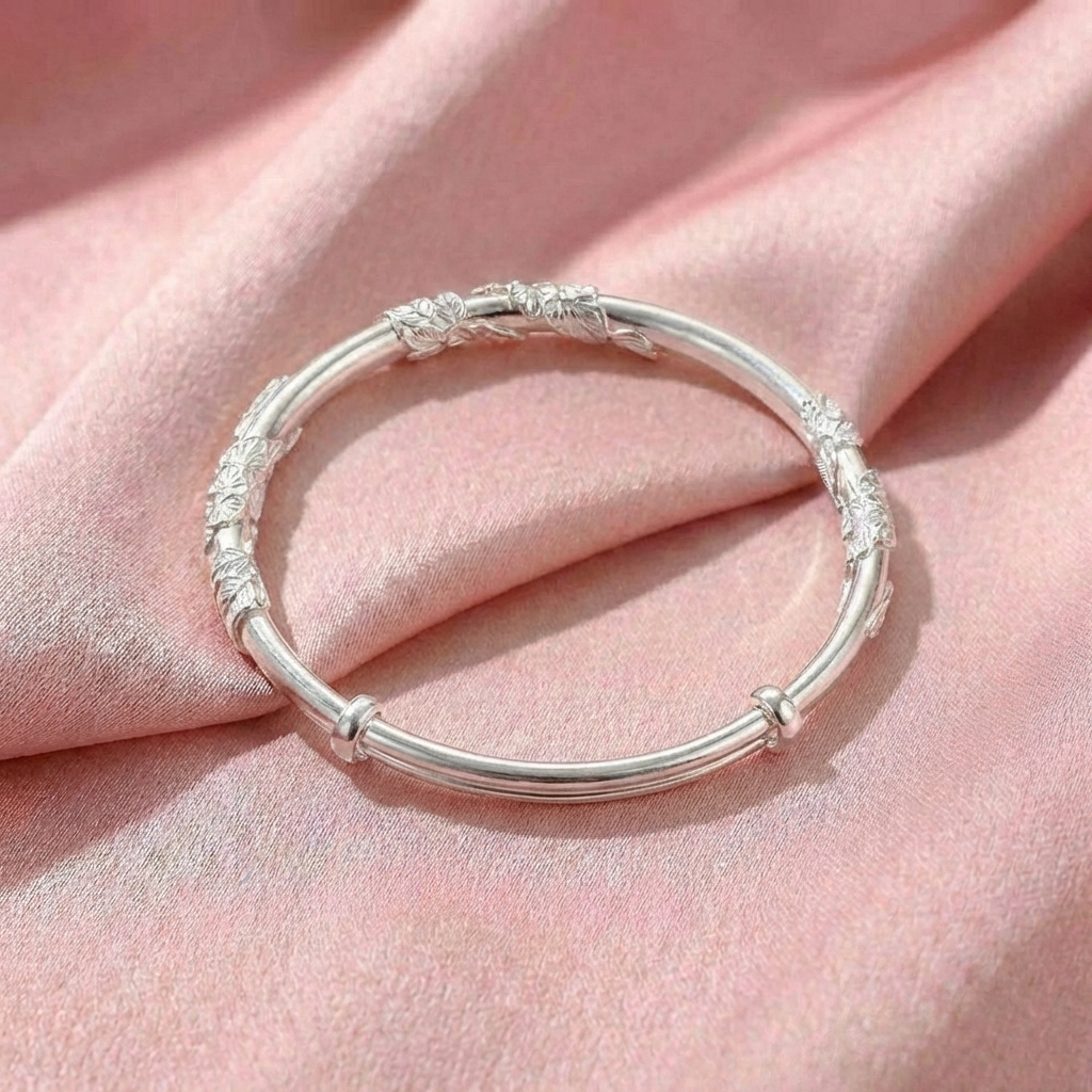 Vòng Tay Bạc Kiềng Hoa Sen - Vòng Đặc Bạc Nguyên Chất - VTBKHS0046