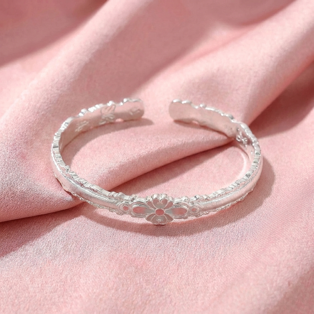 Vòng Tay Bạc Kiềng Hoa Sen - Vòng Đặc Bạc Nguyên Chất - VTBKHS0046