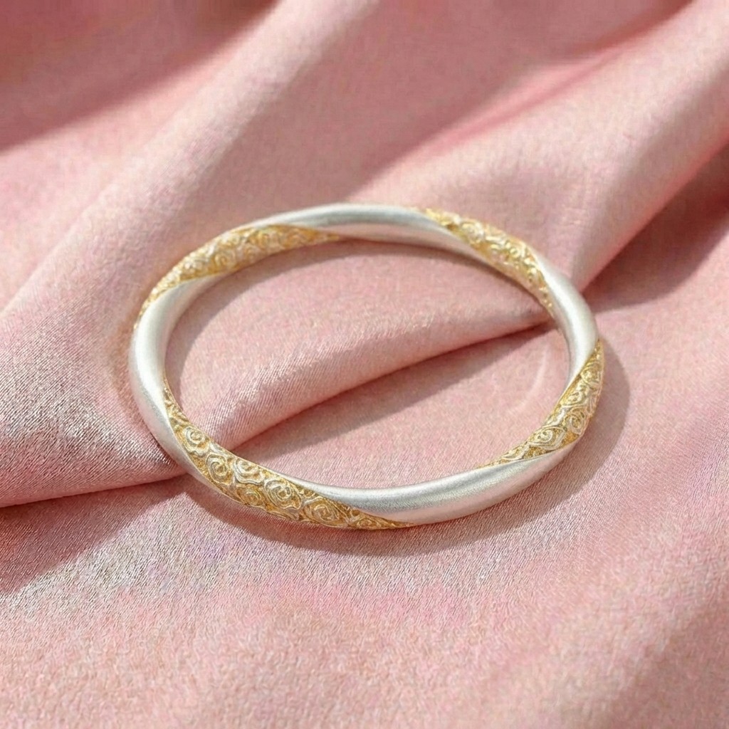 Vòng Tay Bạc Kiềng Hoa Mạ Vàng 24K - Vòng Đặc Bạc Nguyên Chất - VTBKHMV0040