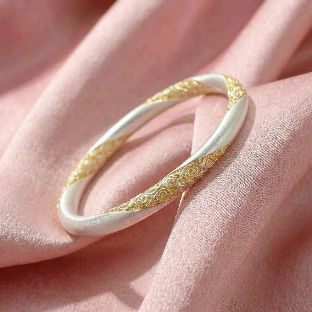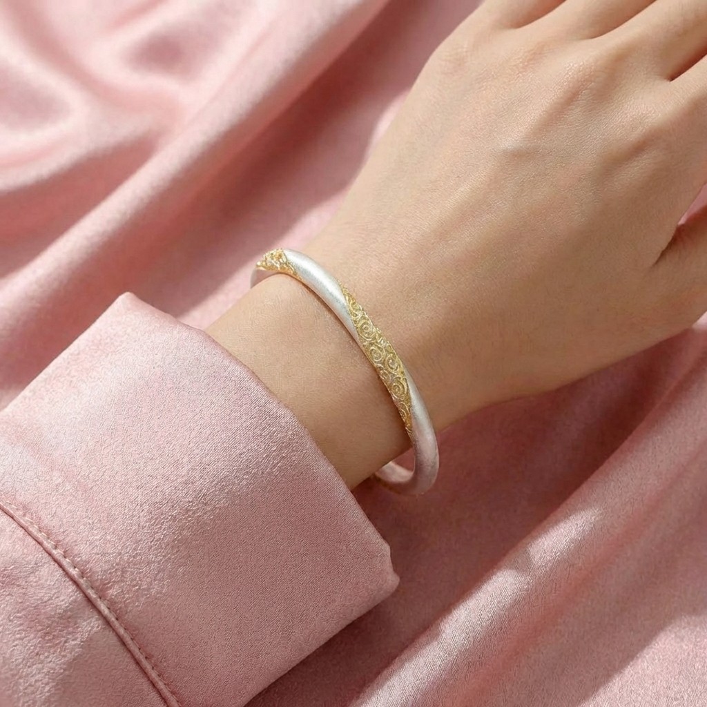 Vòng Tay Bạc Khắc Điểm Vàng - Vòng Đặc Bạc Nguyên Chất - VTBKĐV0003