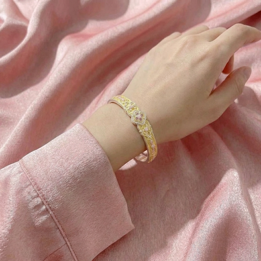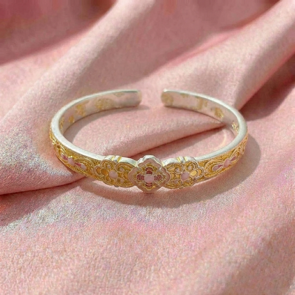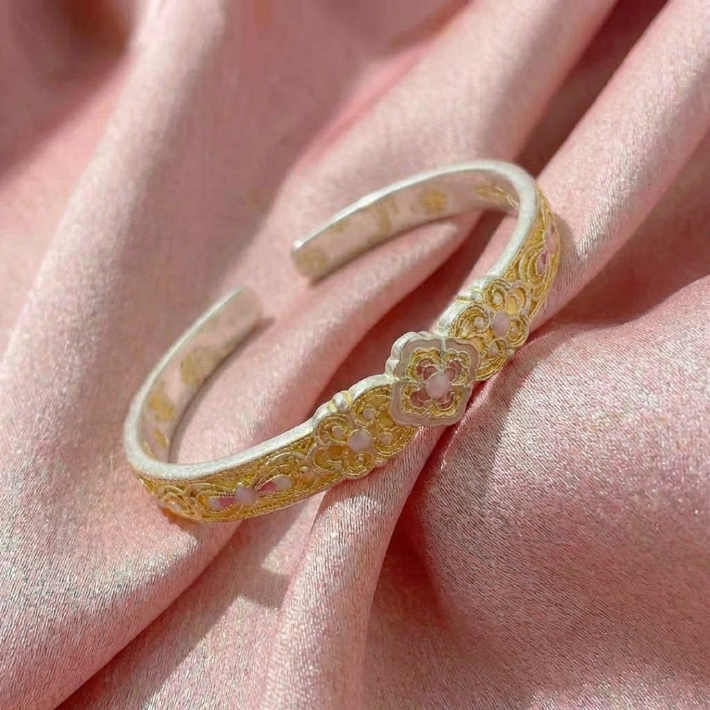 Vòng Tay Bạc Kiềng Hoa Mạ Vàng 24K - Vòng Đặc Bạc Nguyên Chất - VTBKHMV0040