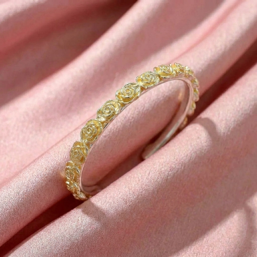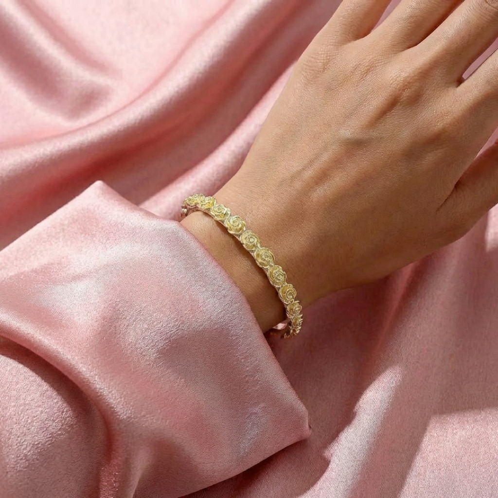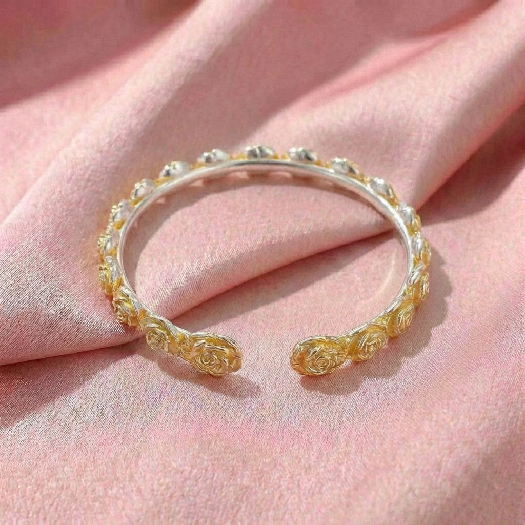Vòng Tay Bạc Kiềng Hoa Hồng Vàng - Vòng Đặc Bạc Nguyên Chất - VTBKHHV0015