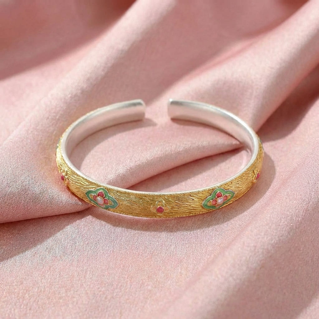 Vòng Tay Bạc Kiềng Mạ Vàng 24K Men Màu - Vòng Đặc Bạc Nguyên Chất - VTBKMVMM0042