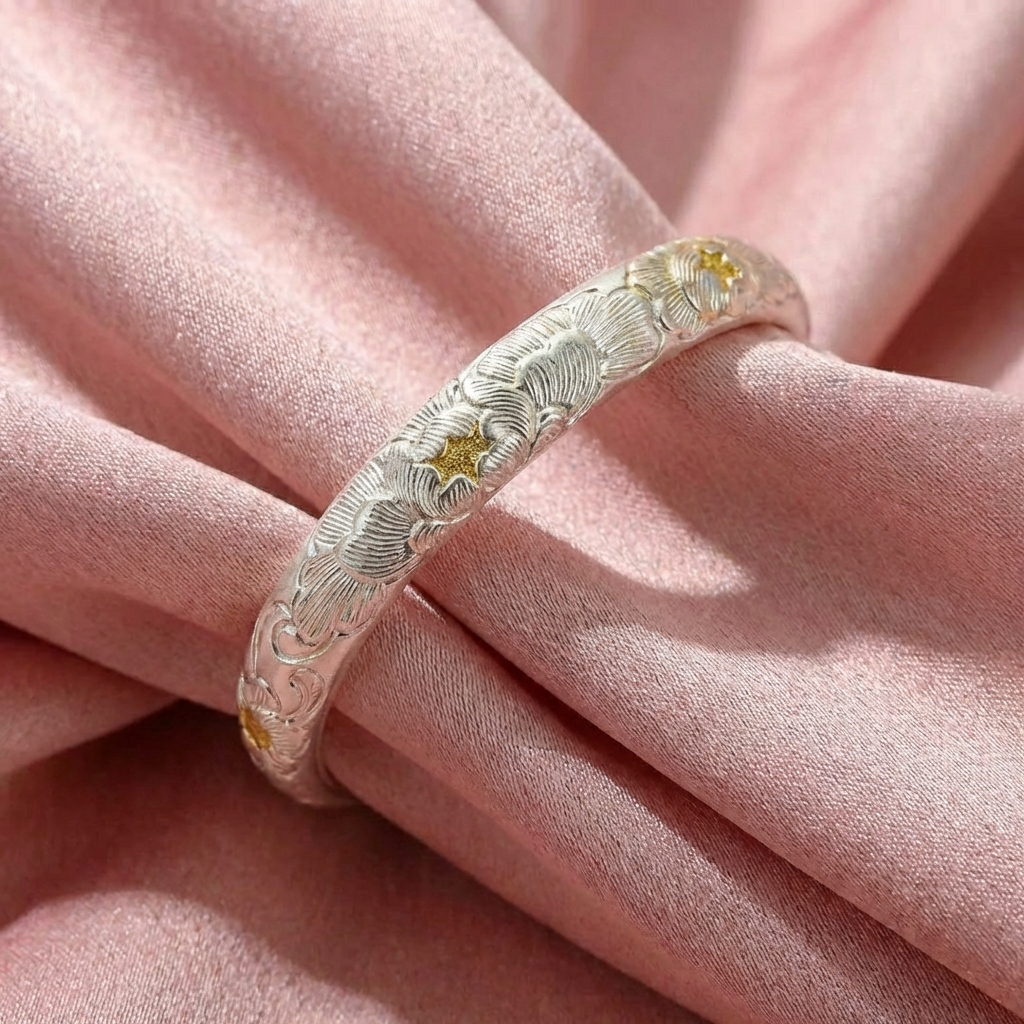 Vòng Tay Bạc Kiềng Hoa Mạ Vàng 24K - Vòng Đặc Bạc Nguyên Chất - VTBKHMV0040