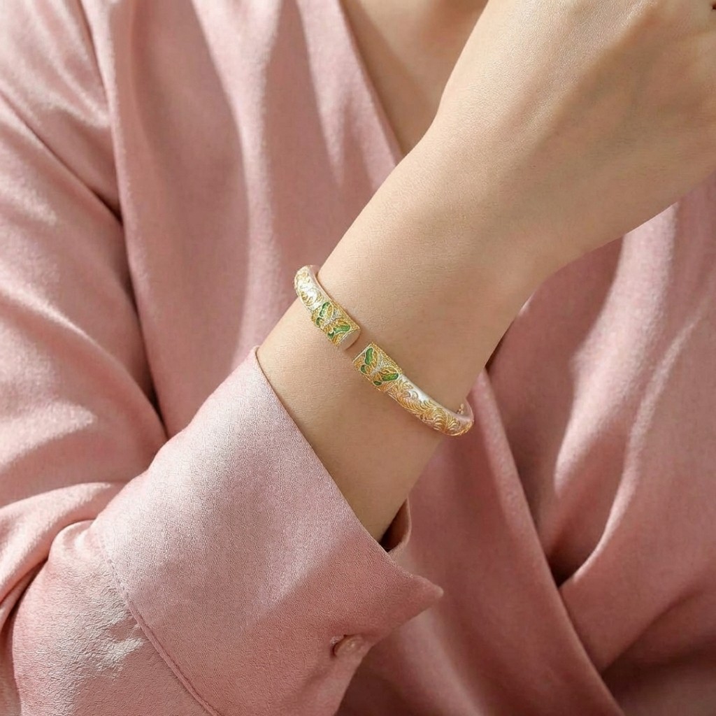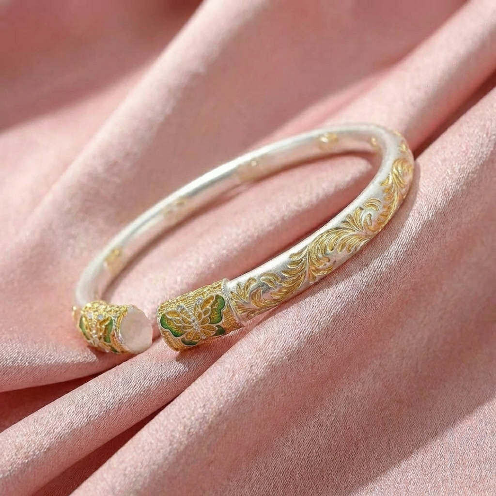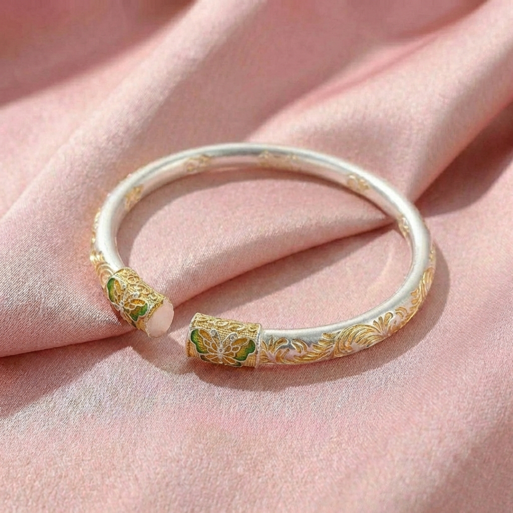 Vòng Tay Bạc Kiềng Mạ Vàng 24K Men Màu - Vòng Đặc Bạc Nguyên Chất - VTBKMVMM0042