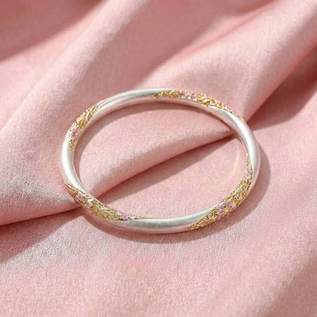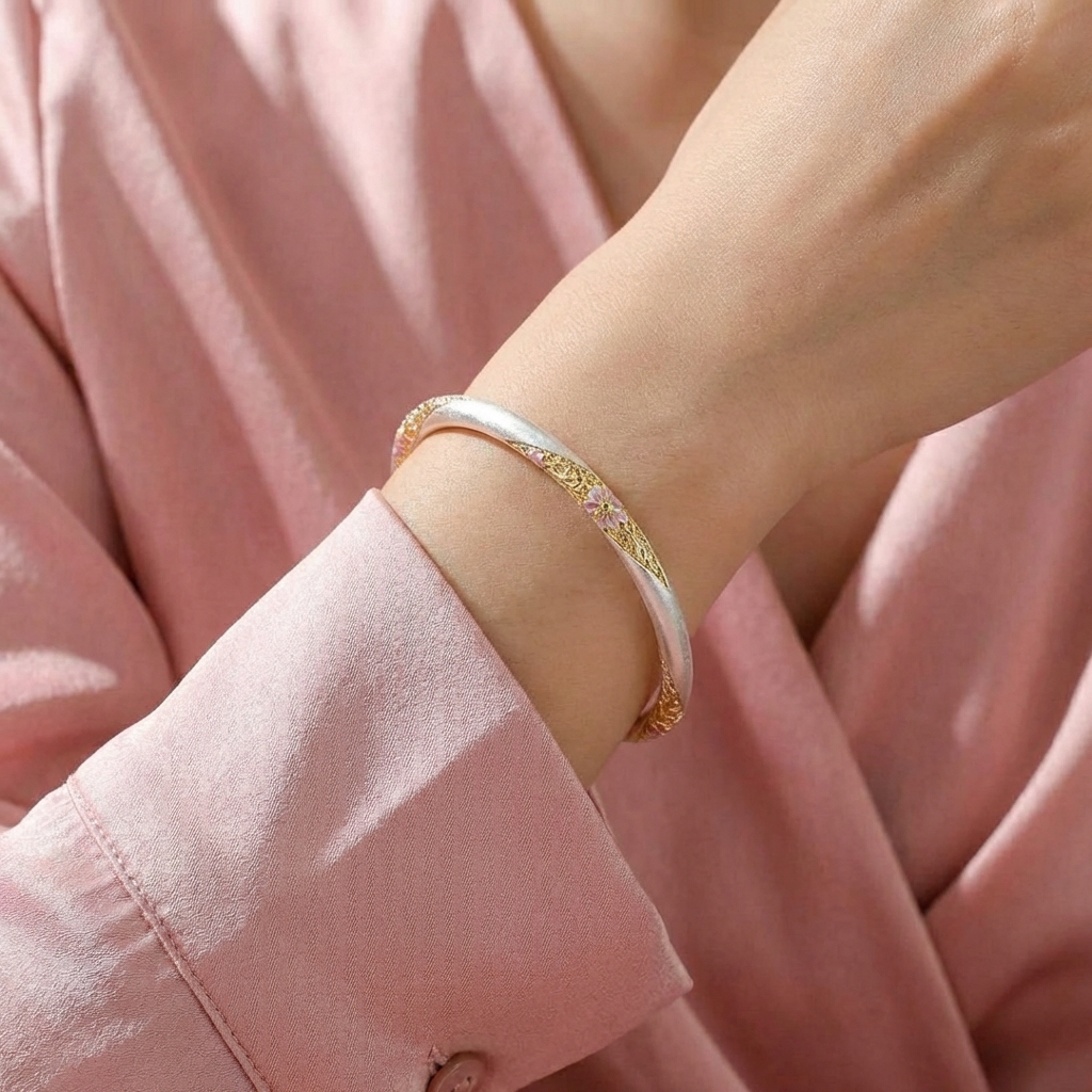 Vòng Tay Bạc Kiềng Mạ Vàng 24K Men Màu - Vòng Đặc Bạc Nguyên Chất - VTBKMVMM0042