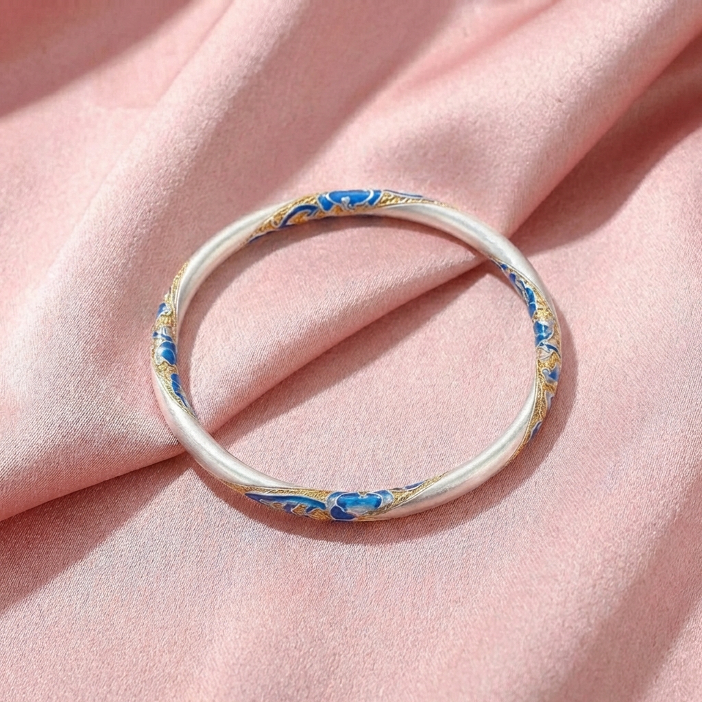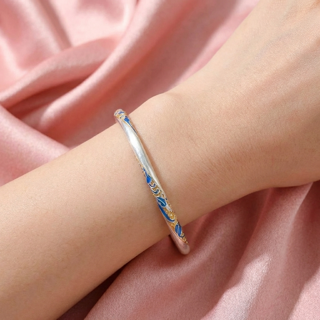 Vòng Tay Bạc Men Màu Xanh Dương - Vòng Đặc Bạc Nguyên Chất - VTBMMXD0022
