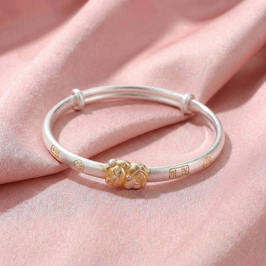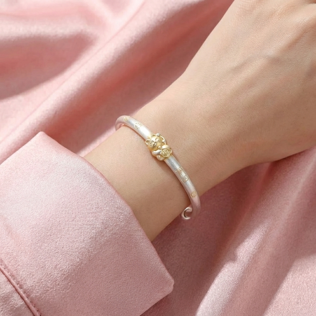 Vòng Tay Bạc Kiềng Mạ Vàng 24K - Vòng Đặc Bạc Nguyên Chất - VTBKMV0041