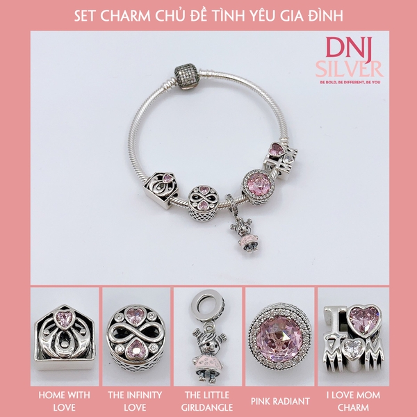 Vòng tay bạc S925, vòng tay charm thời trang phong thủy, Set Charm Chủ Đề Tình Yêu Gia Đình - Mã DS0044