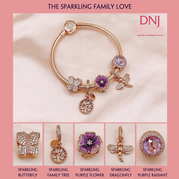 Vòng tay bạc S925, vòng tay charm thời trang phong thủy, The Sparkling Family Love - Mã DS0009