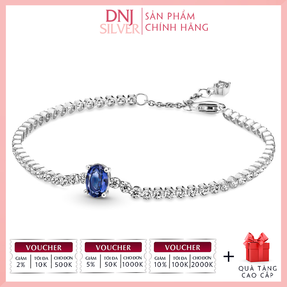 Vòng tay charm bạc 925 cao cấp Sparkling Pavé Tennis có thể điều chỉnh size